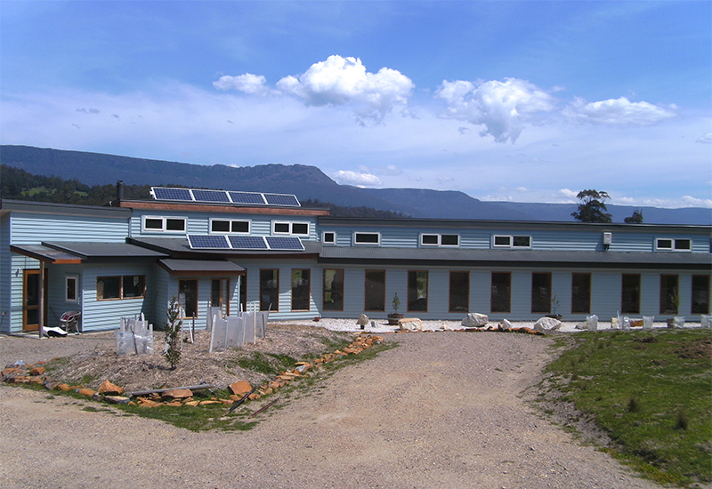 Forest Walks Lodge is situated in the hidden valley of Jackeys Marsh, south of Deloraine, Tasmania. It is a solar passive designed guest house, thermally efficient with its own in-built electricity, clean water, heating and waste water system. As far as possible it was built with sustainable materials.